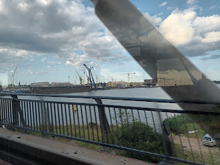 Fél 5-kor indult vissza a vonat, és egy óra múlva már meg is érkeztem Gdanskba. Vettem 2 buszjegyet és a 606-os busszal (a neten olvastam, hogy ez a leggyorsabb) 17.55-kor elindultam a Westerplatte-ra. Kb. 20 perc volt az út, Gdansk kikötőjén keresztül, szép hidakon át robogtunk ki a tengerpartra.